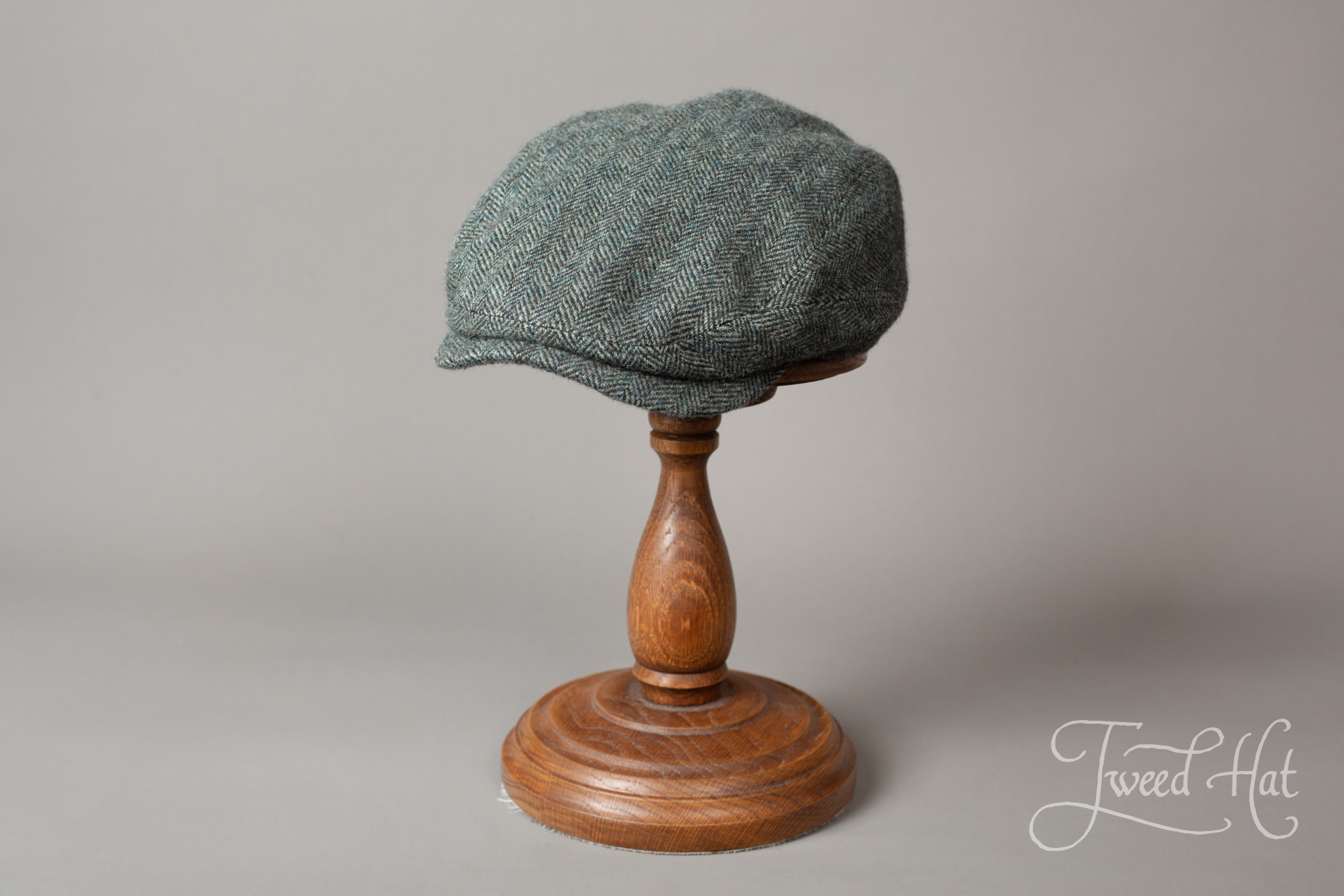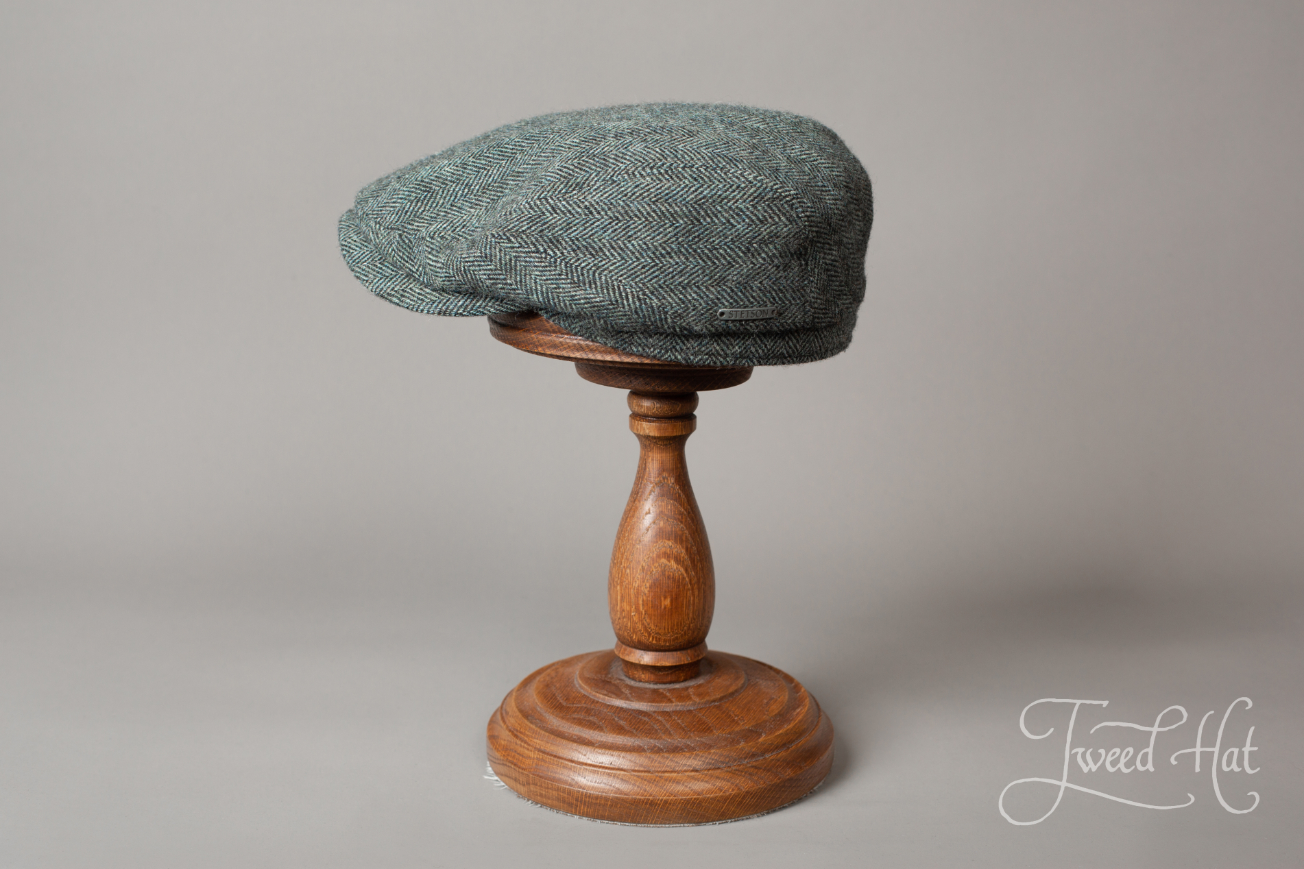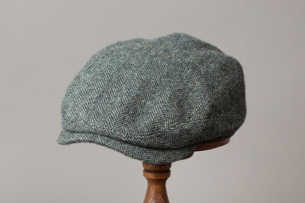 Grey Green Tweed Cap Stetson Driver Small Herringbone Wool #341